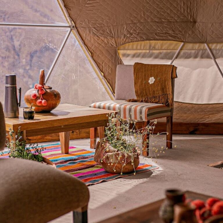 El viaje se completa con una experiencia diferente en Iruya, un pequeño pueblo de montaña de calles empedradas y vistas imponentes, donde el glamping permite conectar con la naturaleza de una manera cómoda y auténtica. Dormir bajo un cielo estrellado, rodeado de silencio y paisajes andinos, transforma la estadía en una vivencia inolvidable que combina aventura, descanso y conexión con el entorno.